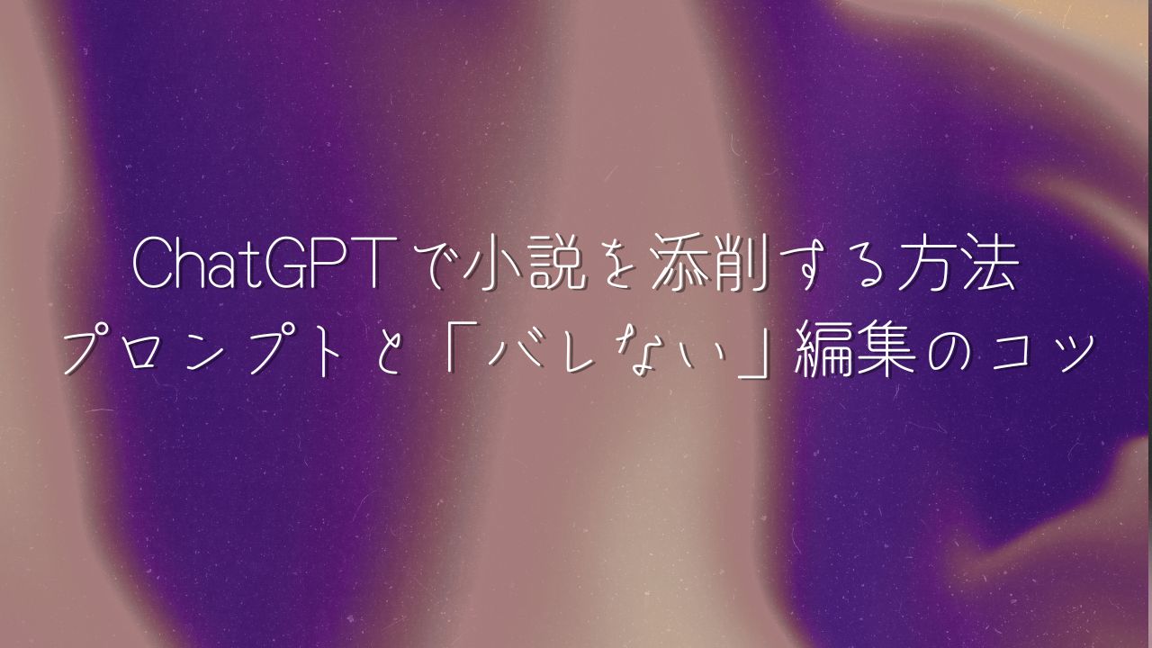 ChatGPTを使えば、校正作業は数秒で終わります。ただし、添削結果をそのまま採用すると、文章から「自分らしさ」が消えてしまうかもしれません。 本記事では、小説添削に使えるプロンプトと、AI添削が「バレない・バレにくい」文章に仕上げる編集手順を解... -