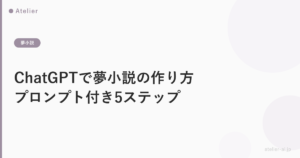 ChatGPTで夢小説の作り方。初心者でも今日書けるプロンプト付き5ステップ ChatGPTを使えば、頭の中にある「あの場面」を夢小説として今日から形にできます。必要なのは5つのステップだけ。ただ、「夢小説書いて」と頼むだけでは、推しの声は再...
