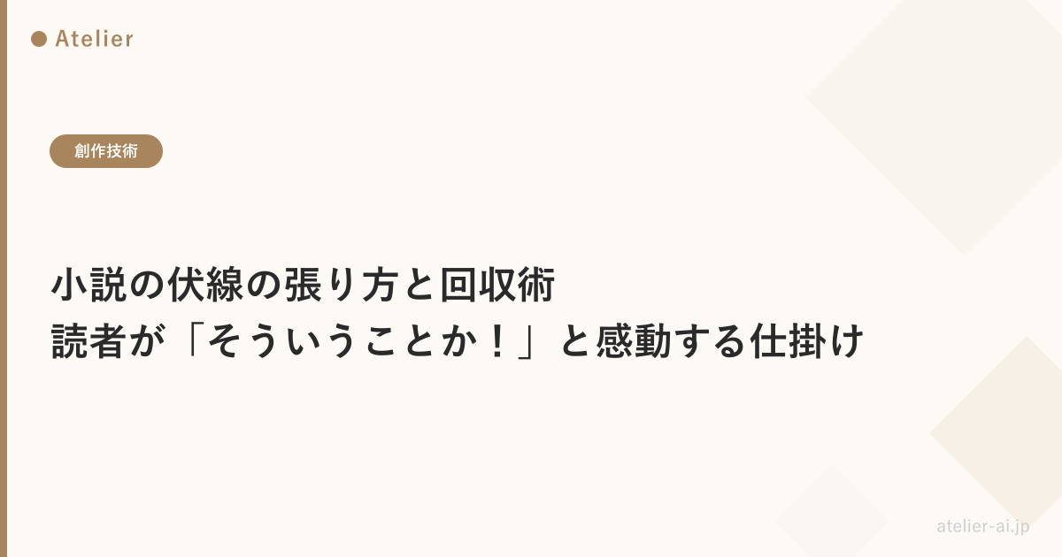 この記事では、初心者でも実践できる伏線の張り方5パターンと、読者が気持ちよく回収を受け取れる仕掛けの作り方をまとめました。