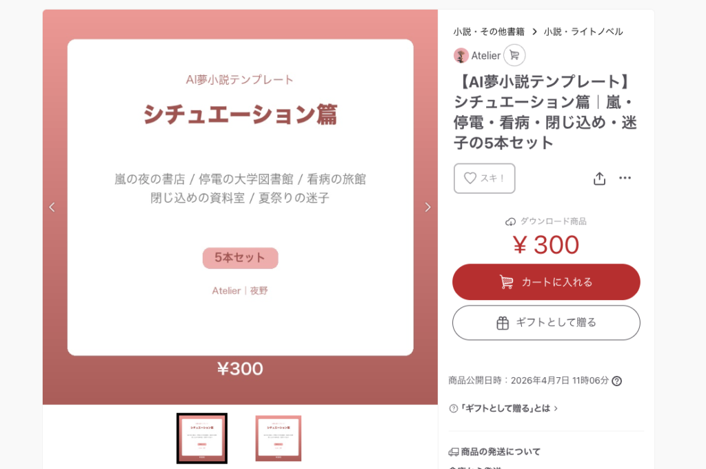 AI夢小説テンプレートのBOOTHショップを開設しました。